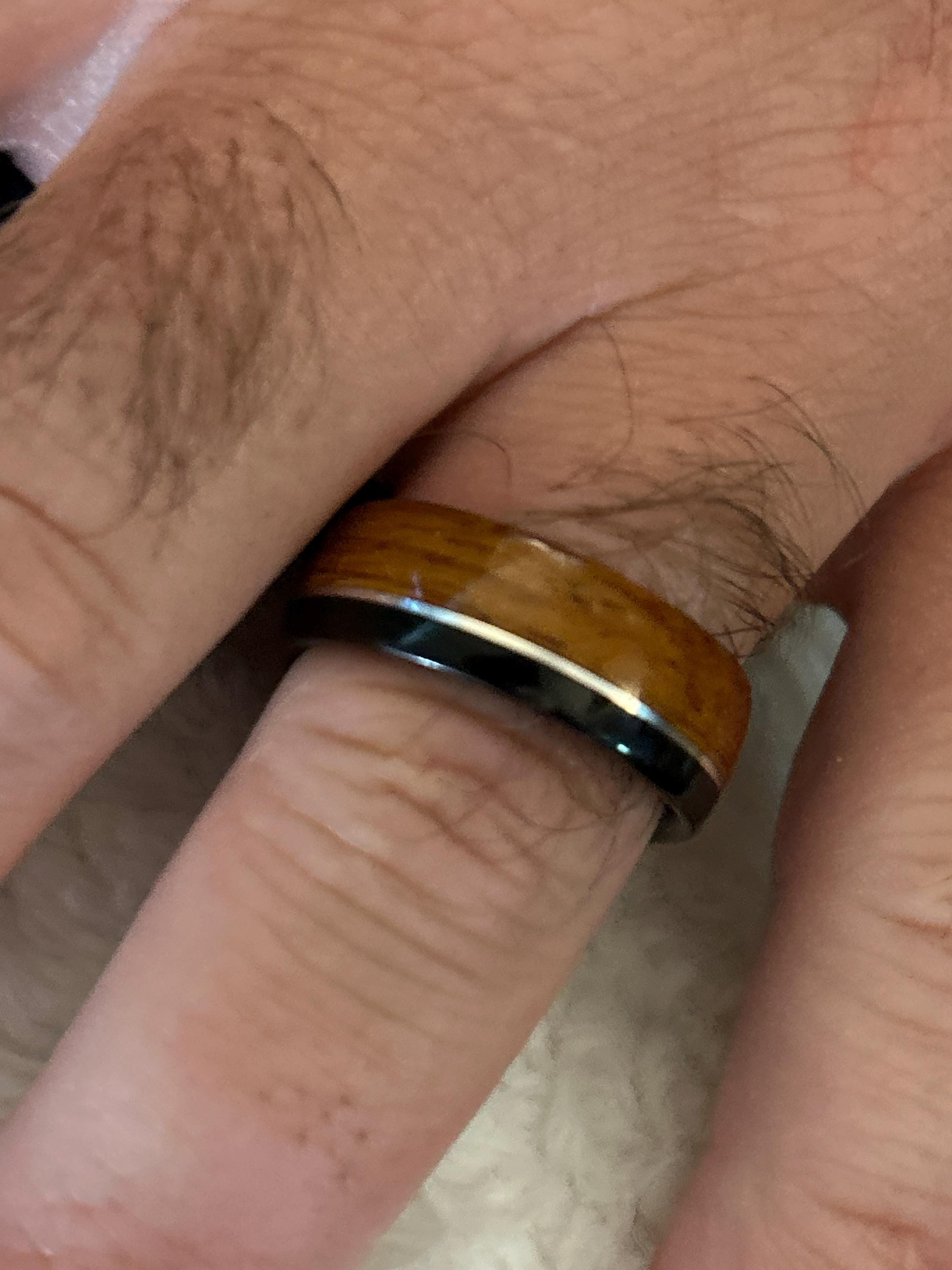 There is a small blemish in the epoxy and the wood is more orangey than I had expected but overall we are very happy with the ring!